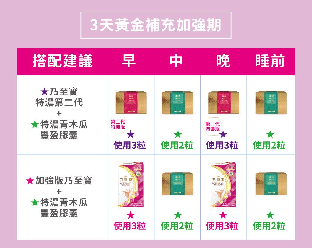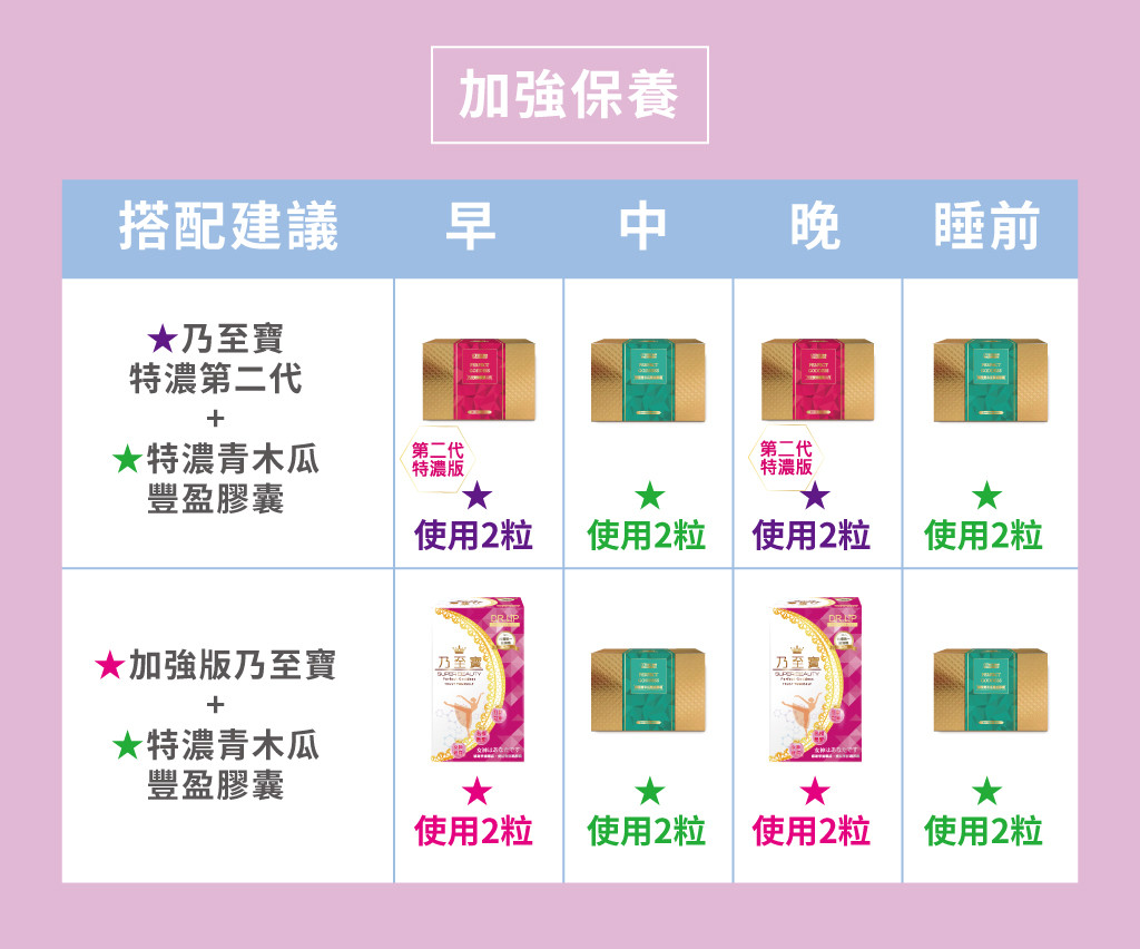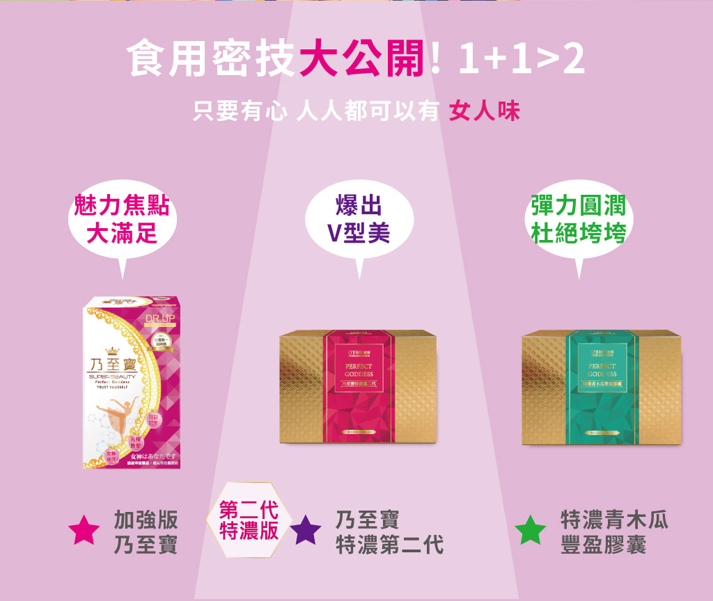 ‧使用期間建議搭配【特濃青木瓜豐盈膠囊】、【鑽透膠原蛋白美顏粉】或【活力美胸霜按摩使用】,使目標更快速達成。