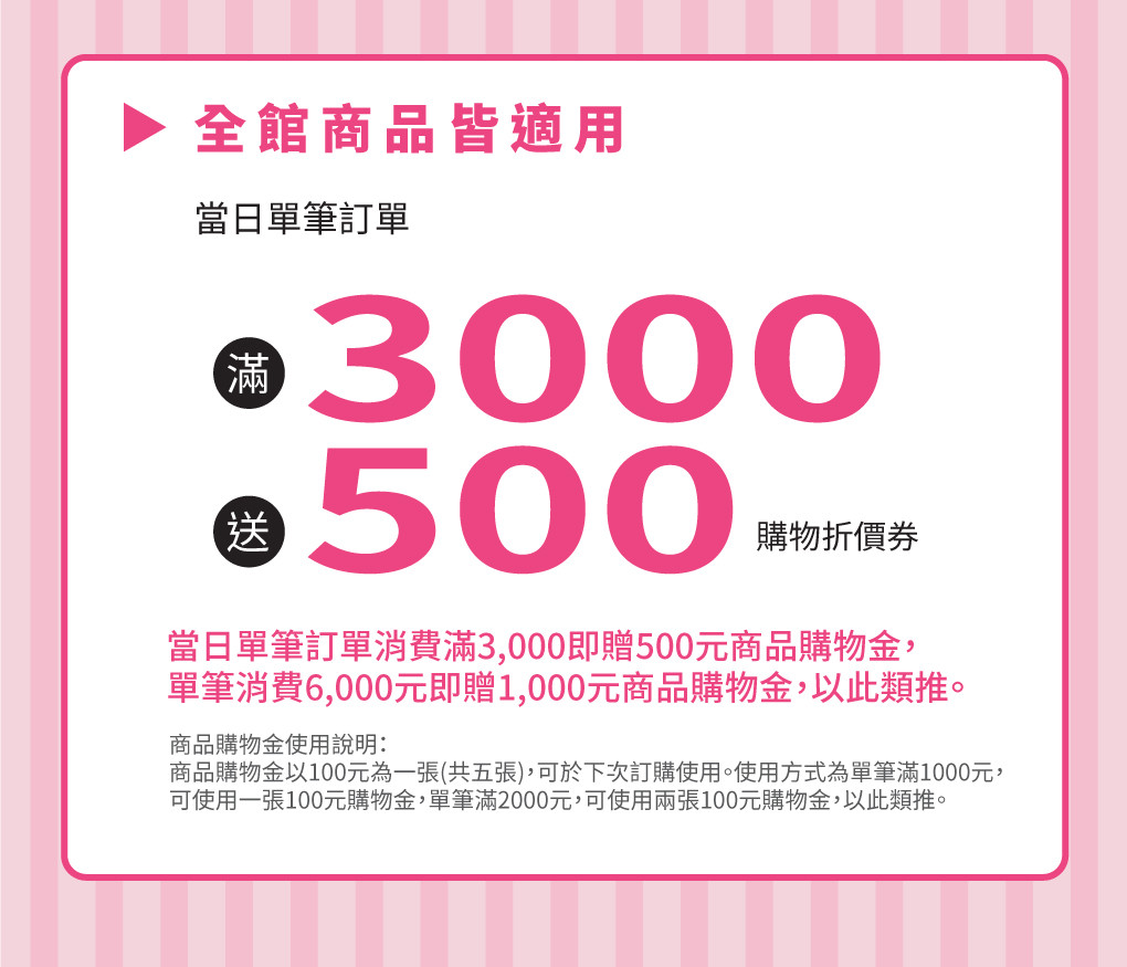 首頁 最新消息 寵愛媽咪★期間限定★滿3000送500